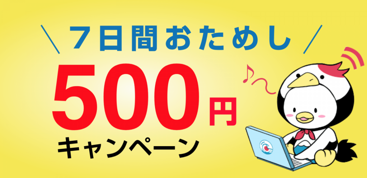 ただ今、お得な7日間お試しが500円!!