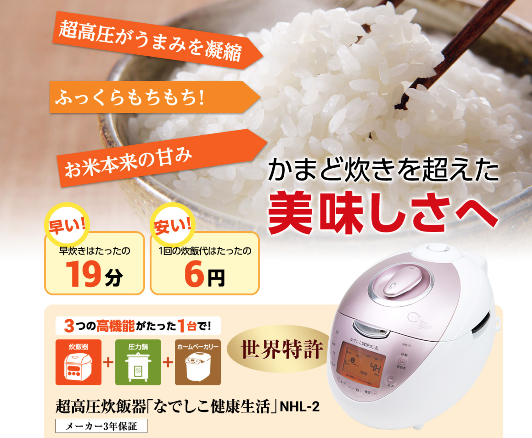 1.8気圧の超高圧炊飯だから、ふっくらもちもち!