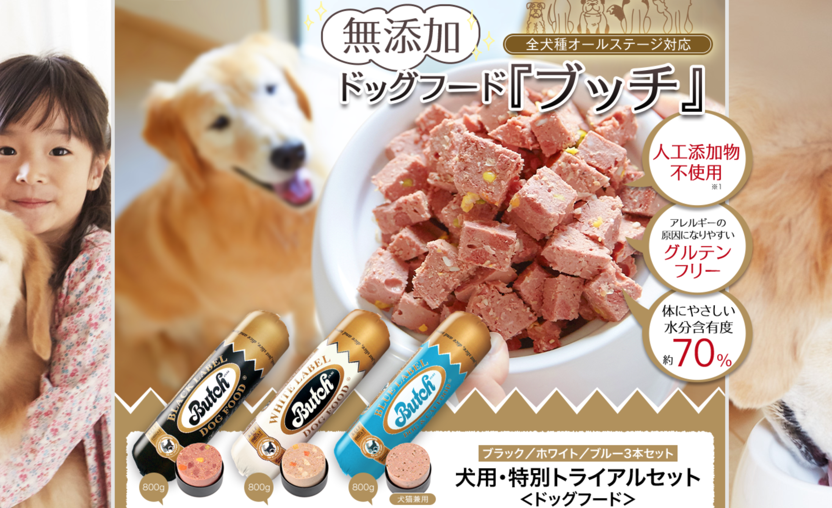 ブッチは理想的な栄養バランスを持つプレミアムフードです。