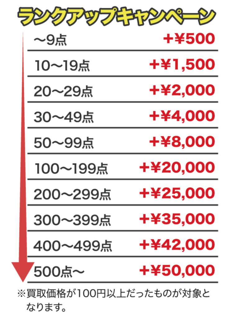 グッズの点数に応じて買取金額にプラスします。