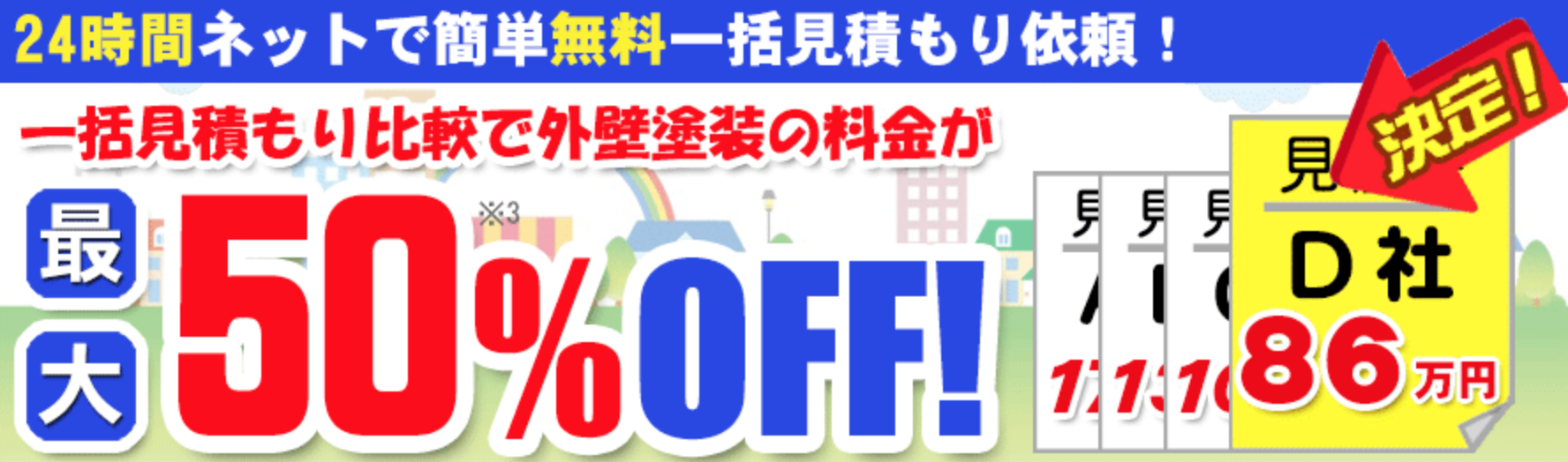 さらに今なら、一括見積もり比較で最大50%OFF!!