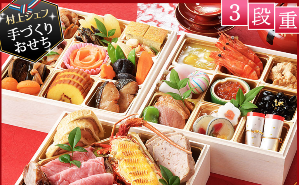 ②厳選素材を贅沢に盛り込んだ、新年にふさわしいおせちです。