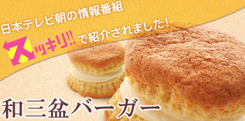 「和三盆バーガー」は、和三盆がたっぷり入ったフカフカのスポンジ生地で、たっぷりのカスタードクリームをサンドしたスイーツバーガーです。