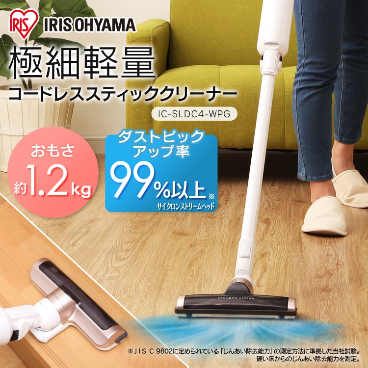 大人気商品がグレードアップ!業界最軽量クラス約1.2kgの極細軽量スティッククリーナーです。空気の力でゴミを掻き出すサイクロンストリームヘッド搭載で細かな埃も強力吸引!ダストピックアップ率99%