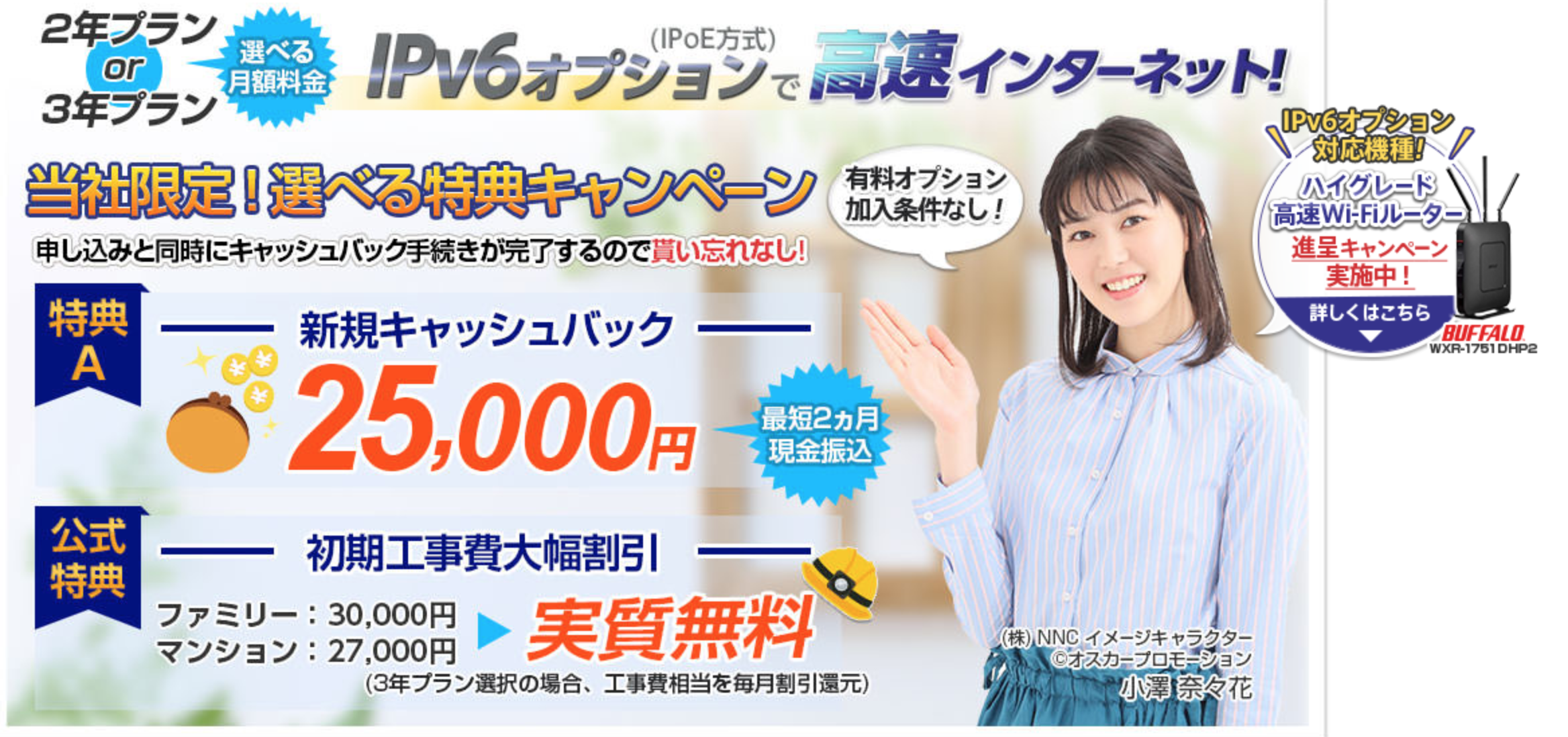 NNコミュニケーションズなら、ビッグローブ光が25,000円キャッシュバック